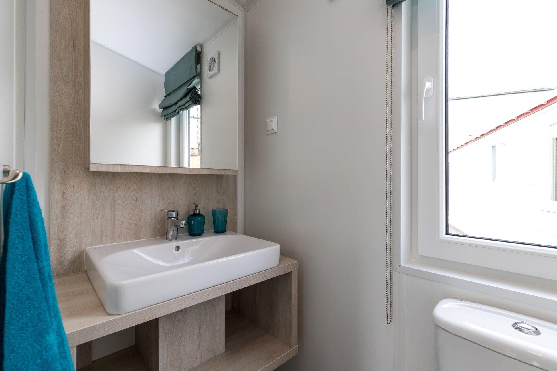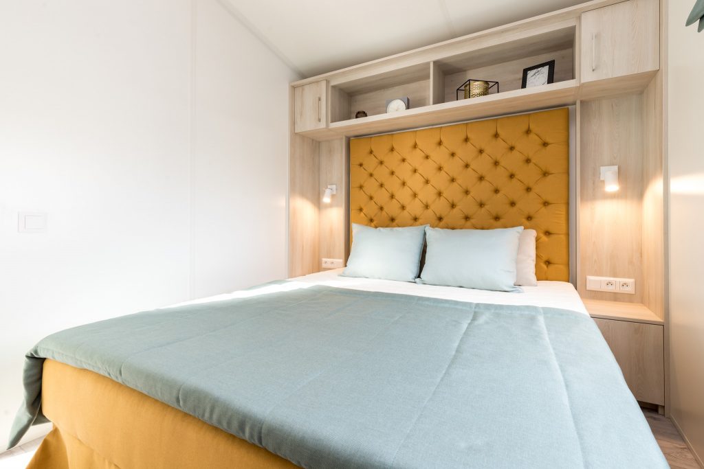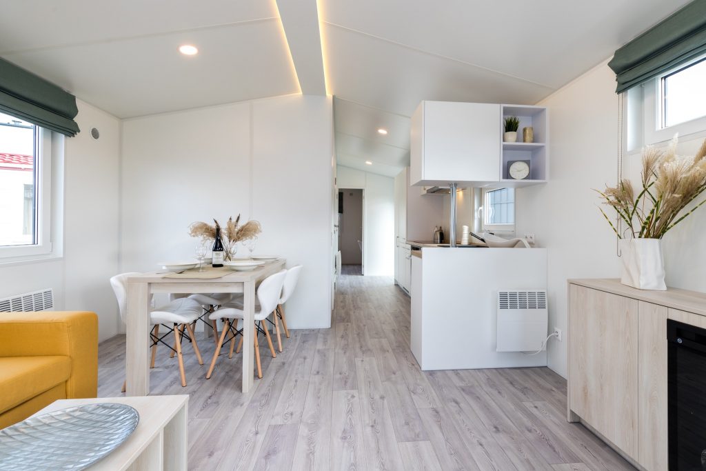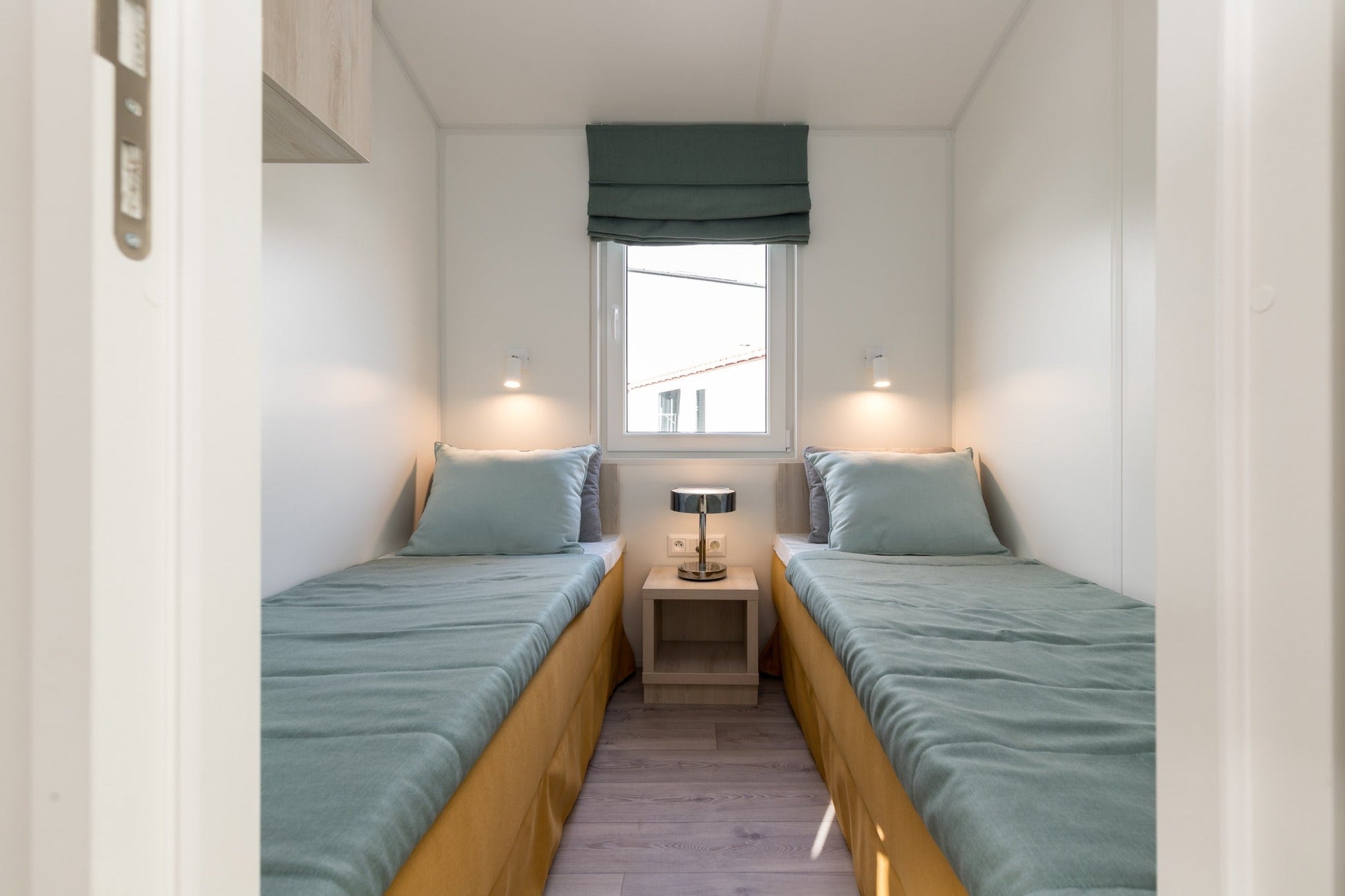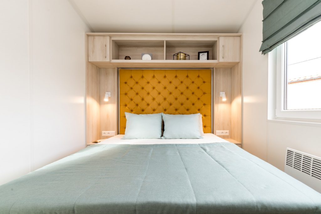 Será un complemento ideal para quienes disfrutan de tiempo pasar al aire libre, lejos de la ciudad. El espacioso dormitorio principal, con una cómoda cama doble, cuenta con un armario doble dividido en dos espacios para máxima comodidad. Todo esto se suma al dormitorio infantil con dos camas.