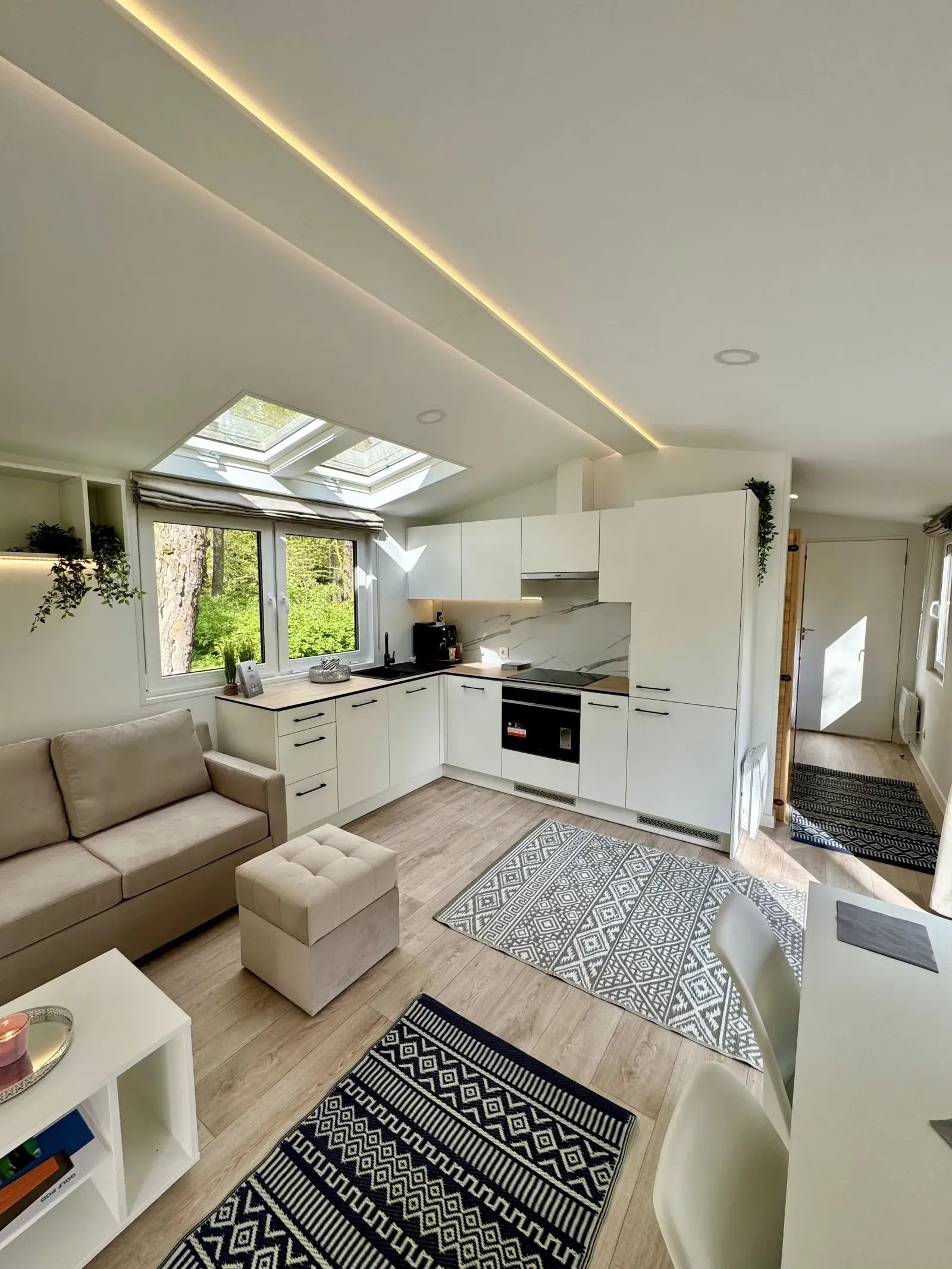¡Bienvenido al mundo del lujo de las minicasas! Nuestro modelo Capri Luxurior no es solo una casa pequeña: es una obra maestra de la arquitectura moderna y un símbolo de confort de vida exclusivo en un espacio pequeño. Como modelo insignia de nuestra empresa, el Capri Luxurior encarna lo mejor que el mundo de las casas pequeñas tiene para ofrecer.