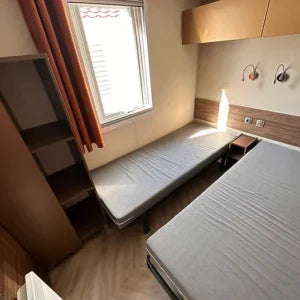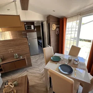 Esta casa móvil usada de la marca francesa IRM es una auténtica vivienda residencial. En muy buen estado general, esta casa móvil tiene aislamiento reforzado para las 4 estaciones. El IRM Hampton se compone de un hermoso salón con cocina equipada (lavavajillas, microondas, frigorífico-congelador) y comedor en esquina. Su gran salón ofrece un verdadero espacio. comedor, así como un sofá esquinero convertible. Esta casa móvil con acabados residenciales tiene 3 dormitorios reales. La principal es una suite principal con acceso directo al baño. Sus 3 dormitorios, incluido el dormitorio principal, le ofrecen acceso directo al baño. El IRM Hampton Résidentiel es la casa móvil de segunda mano ideal para vivir todo el año. en un camping o terreno privado.