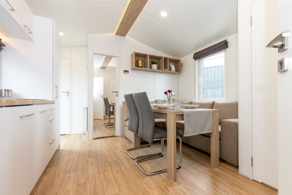 Este modelo cuenta con una cocina americana compacta, sala de estar, 3 dormitorios con 6 camas y 1 baño. ¡Estamos seguros de que será perfecto para una casa de vacaciones familiar junto al lago!