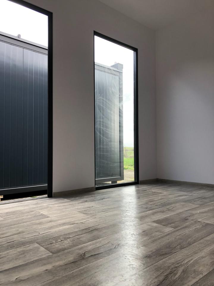 El interior está acabado con el interior del panel sándwich cubierto con una lámina blanca sin relieve de 0,5 mm de espesor.
