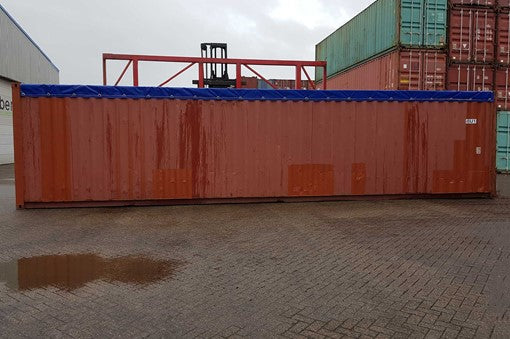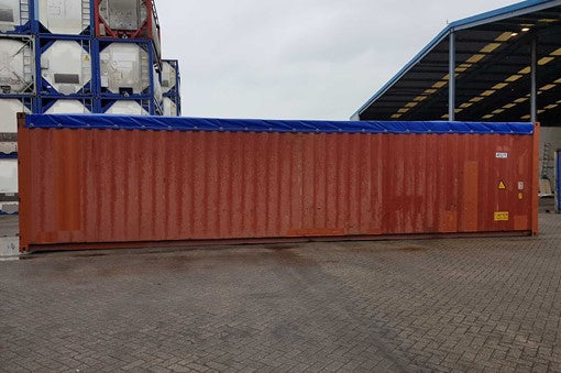 El contenedor open top de 40 pies tiene las mismas dimensiones que el seco de 40 pies, pero tiene la particularidad de tener un techo removible: ya sea con una lona completamente removible, o con un techo “duro” con una lámina rígida de acero. Se utiliza para el transporte de mercancías cuyo tamaño no permite la carga por las puertas.