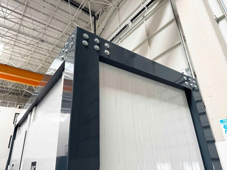 • Suelo: panel de fibrocemento de 16 mm + revestimiento de suelo de resina epoxi "sin juntas" de color RAL 7015