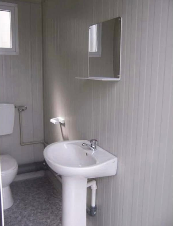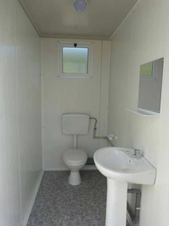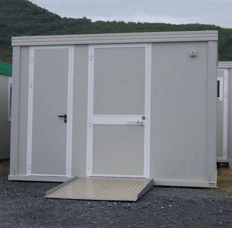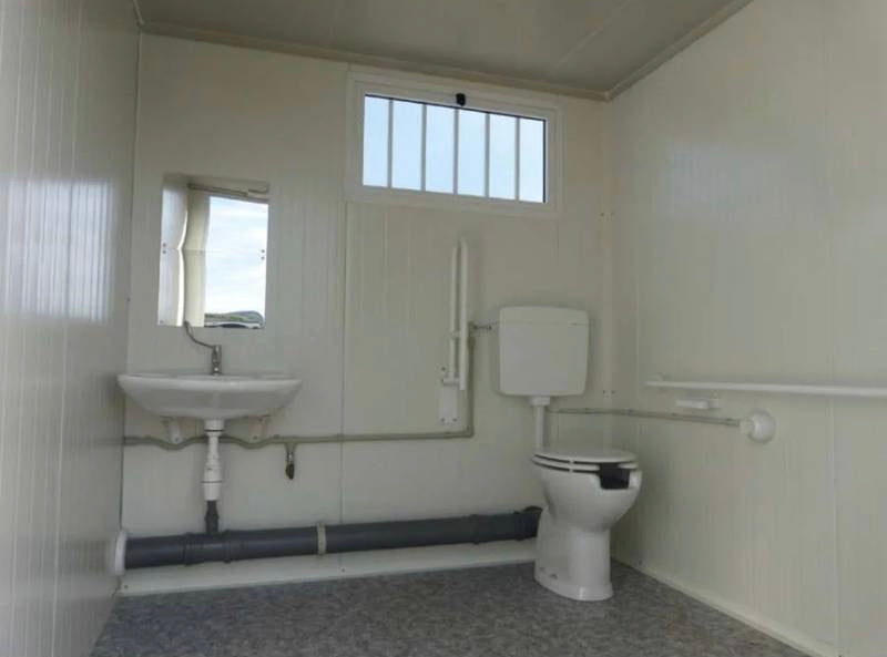 La estructura cuenta con una sección dedicada a PMR, equipada con un inodoro y un lavabo adaptados , ambos con la grifería necesaria para su fácil uso. También incluye un inodoro y lavabo estándar para el público general. Fabricado con una estructura de acero galvanizado y lacado , está diseñado para un manejo sencillo.