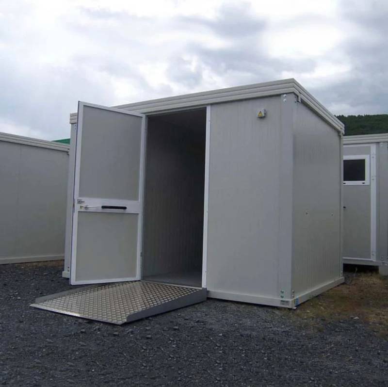 Las paredes y el techo, hechos de paneles sándwich de 40 mm y 30 mm , respectivamente, ofrecen un excelente aislamiento. El piso, de madera y cemento con revestimiento de PVC, garantiza una superficie robusta y fácil de limpiar.