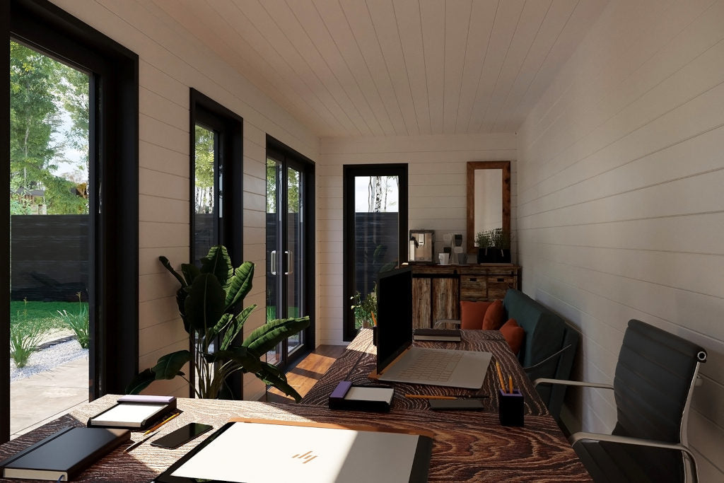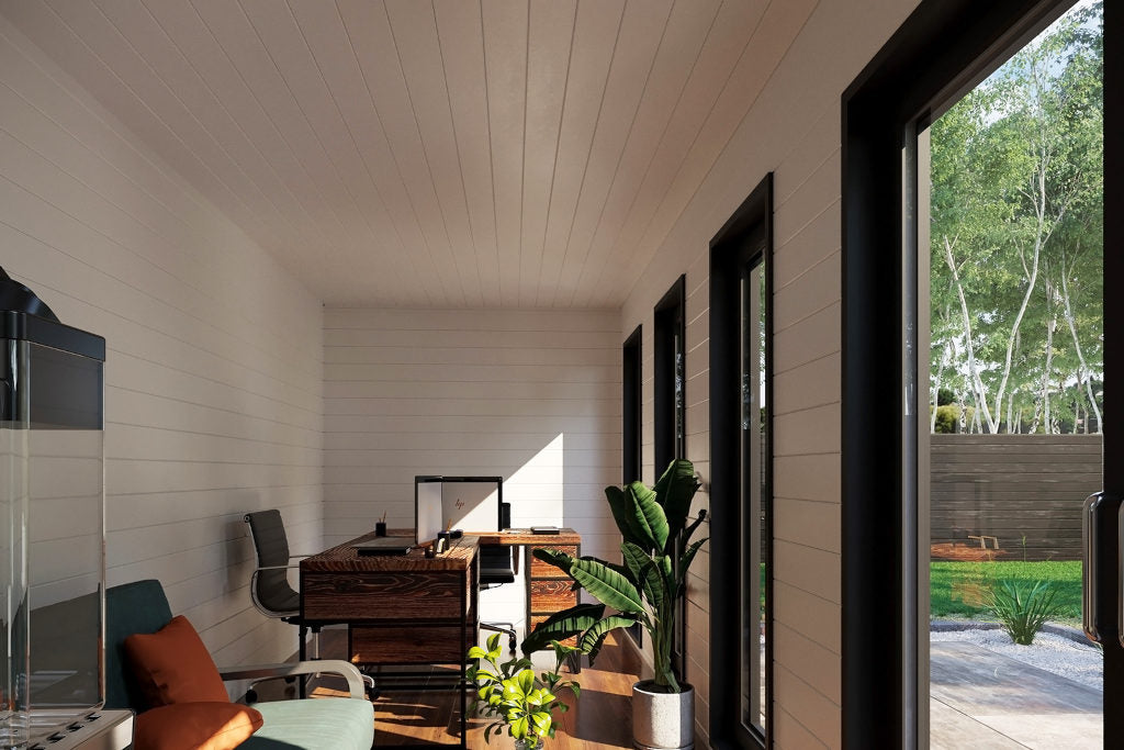 Este contenedor de oficina se entrega listo para usar. De hecho, inmediatamente después de descargarlo en el lugar elegido, lo enchufa y puede comenzar a usarlo como desee. El escritorio de jardín Office Garden V1 es perfecto como oficina, por supuesto, pero se puede convertir en un estudio, una habitación de invitados o una habitación adicional.