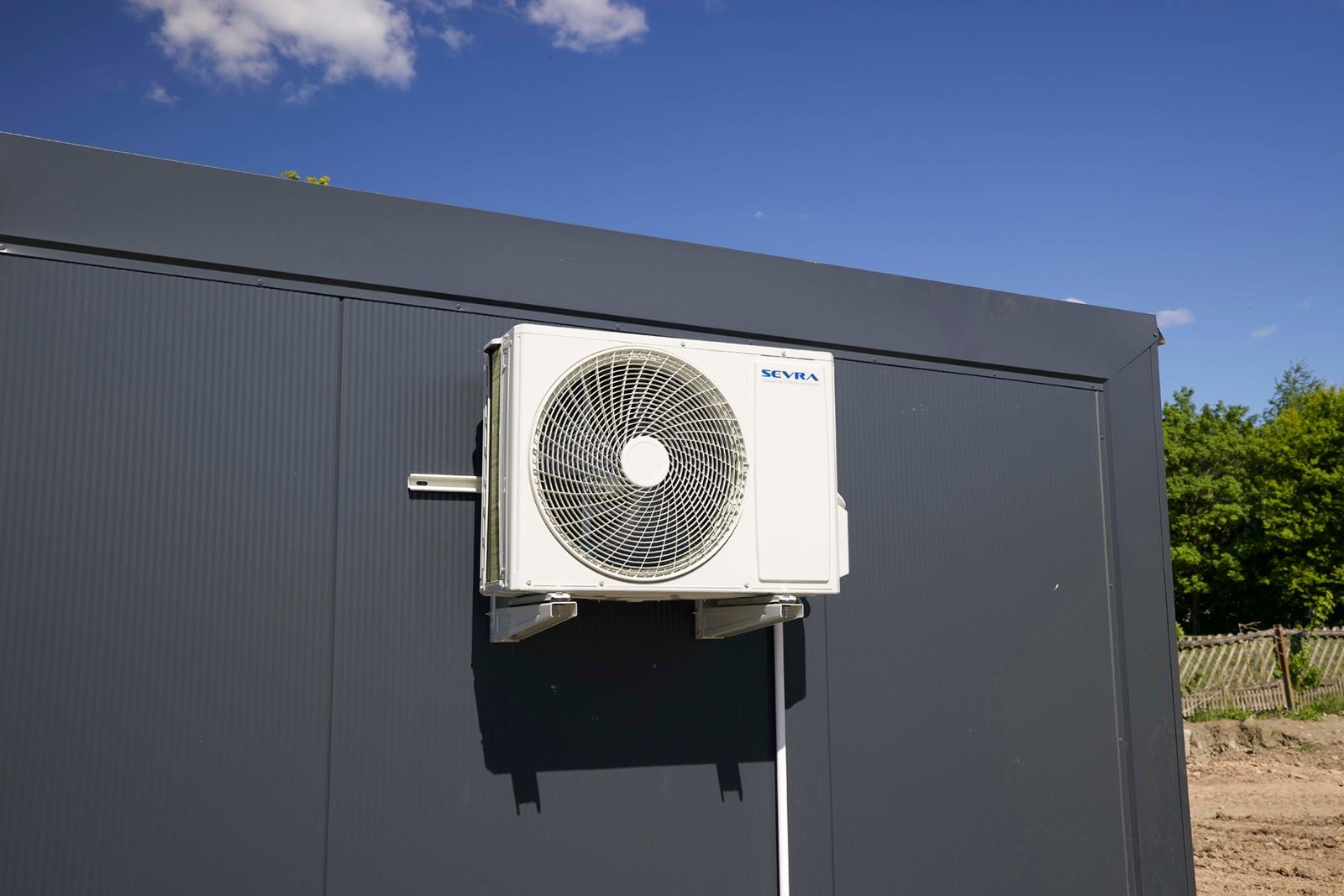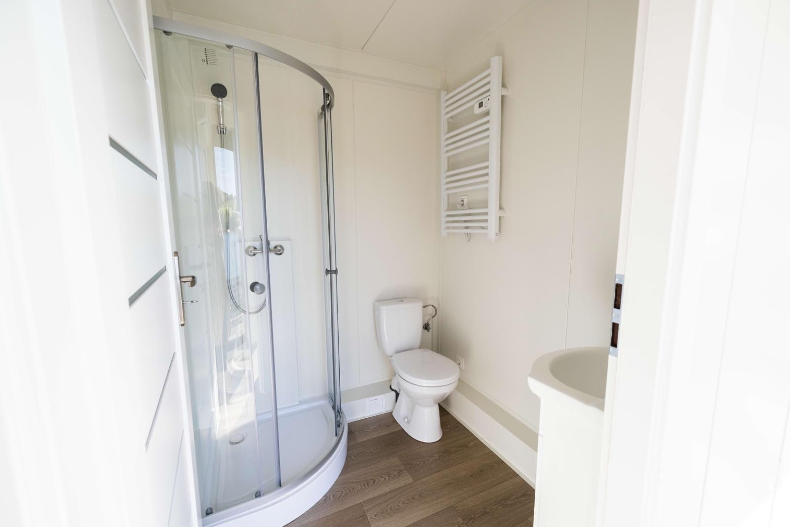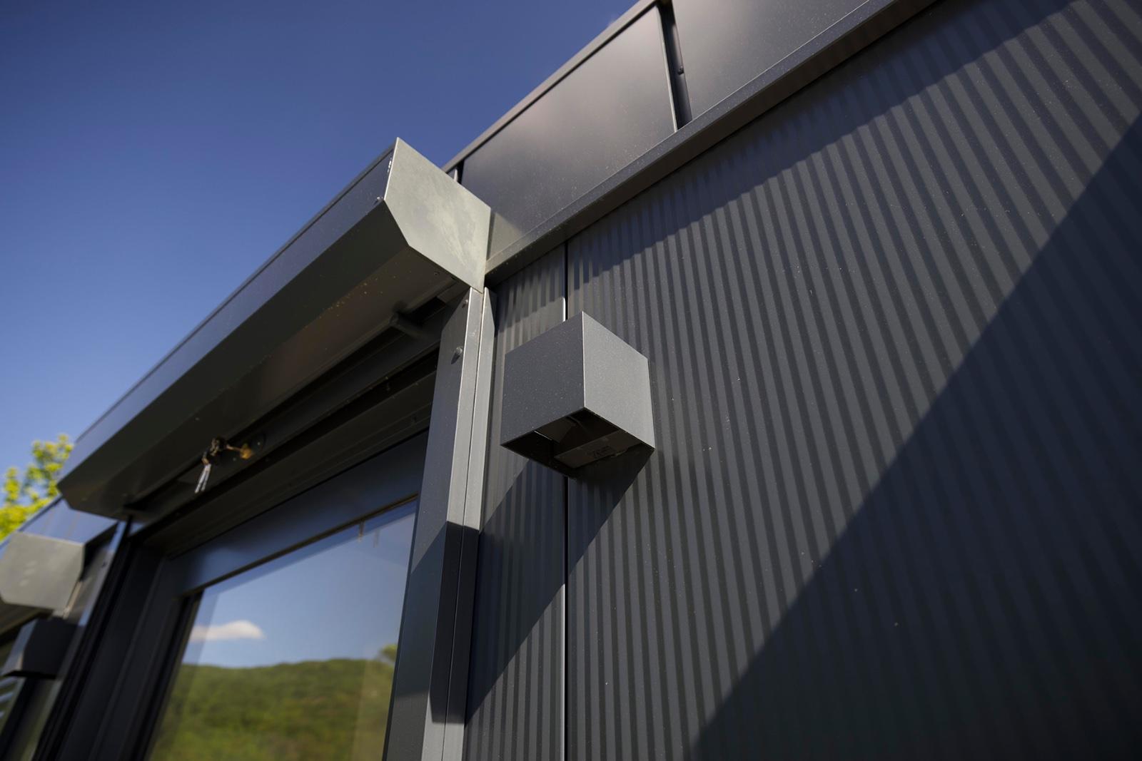 * Paredes, suelo y techo: Paneles sándwich PIR (100 mm) con relleno de poliuretano para un excelente aislamiento y eficiencia energética (WDK: 0,23 W/m²). Suelo de PVC con aspecto de madera y un panel de suelo OSB adicional (15 mm). Techo con una pendiente del 5% para un drenaje de agua eficaz.