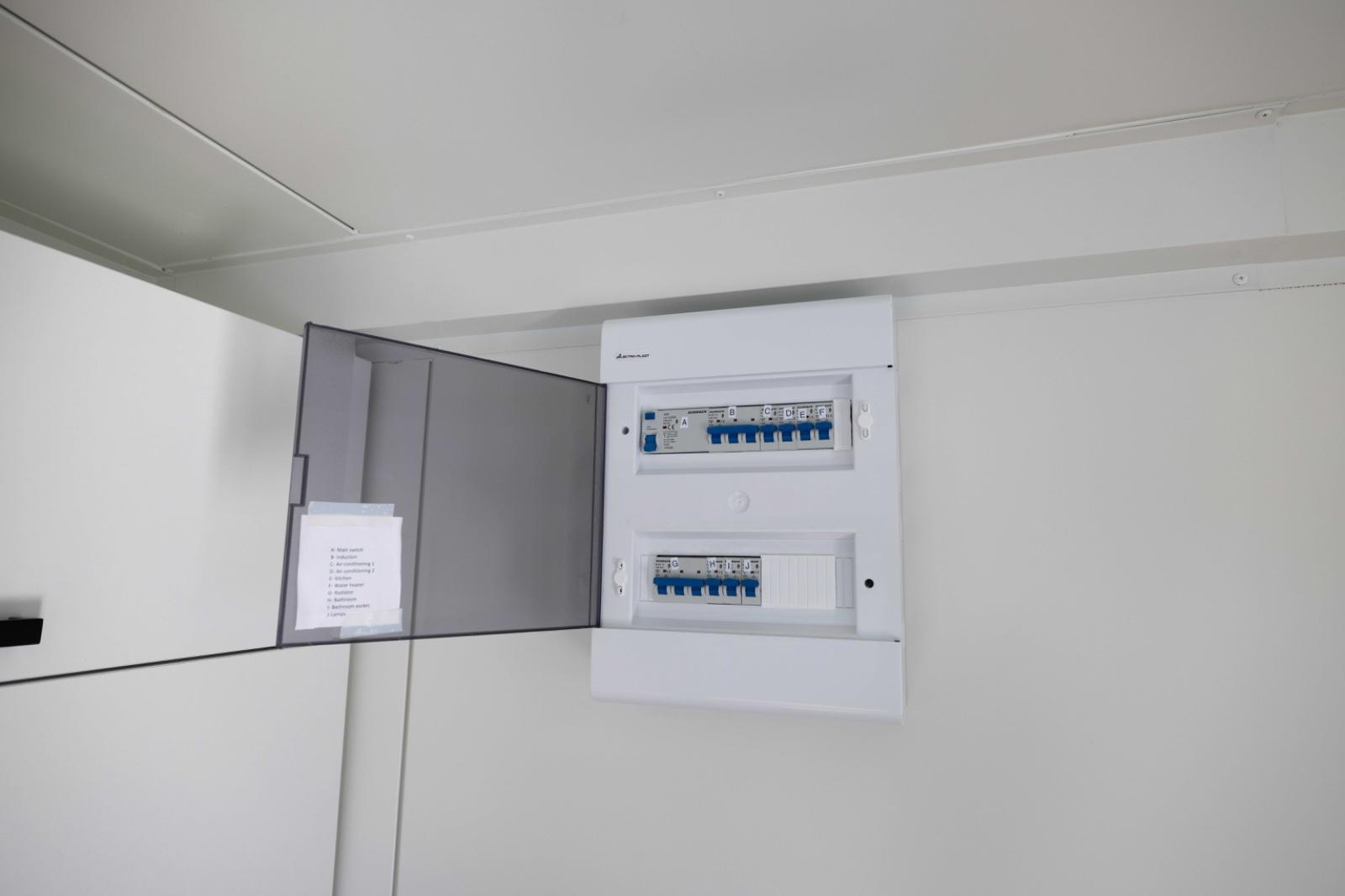 * Instalación eléctrica: Caja de distribución; 4 lámparas LED; 7 enchufes dobles, 2 enchufes individuales con interruptores incluidos, 2 luces exteriores; cableado en la pared.